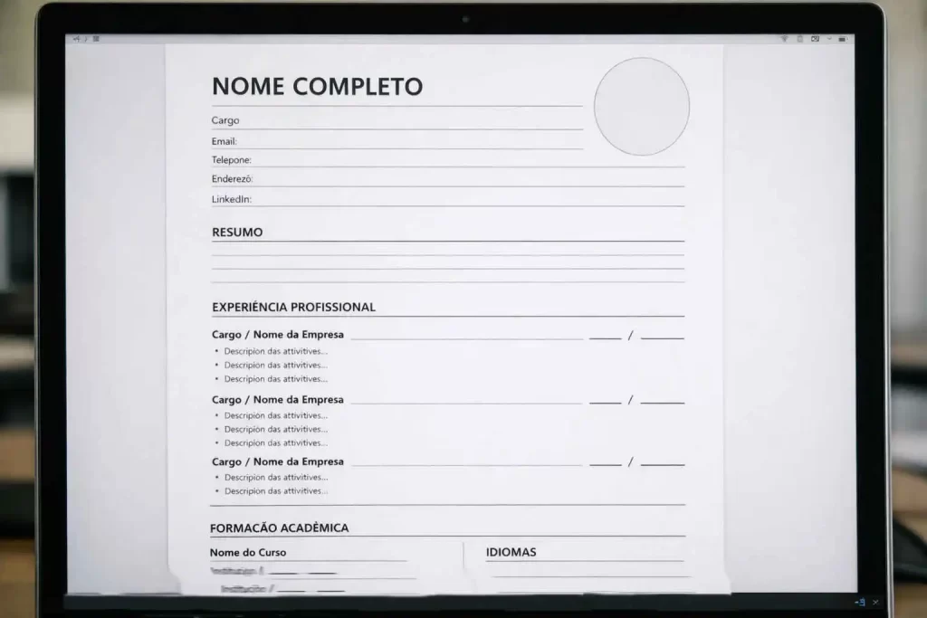 A inclusão da sua imagem visual só deve acontecer se a descrição oficial da vaga exigir isso explicitamente. Caso contrário, mantenha o design minimalista e foque puramente na apresentação das suas competências reais.